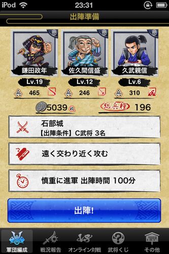 裏越前、一向一揆の繰り出す特技が凄すぎて手こずる。 石部城、C武将3名がけっこう厳しかった。とりあえずそこそこ育っている人を選んだ。妨害対策として久武を入れる。 大津城、夫婦を入れて嫁のお父さんを入れてみた。 Sは京極高次だが、妨害に遭ったり、…